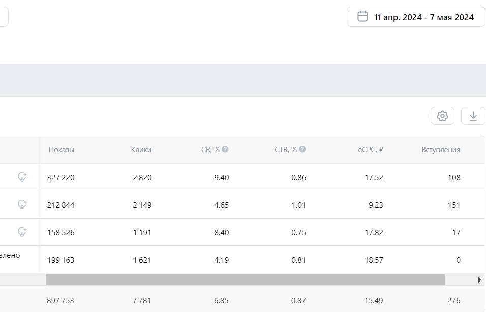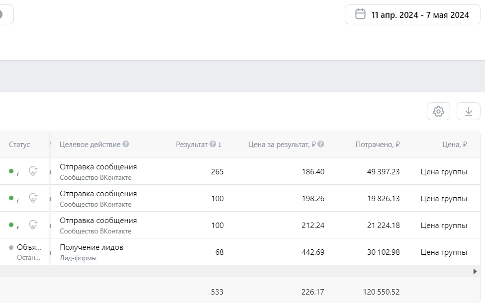 После первых запусков рекламных объявлений были выявлены рабочие связки: